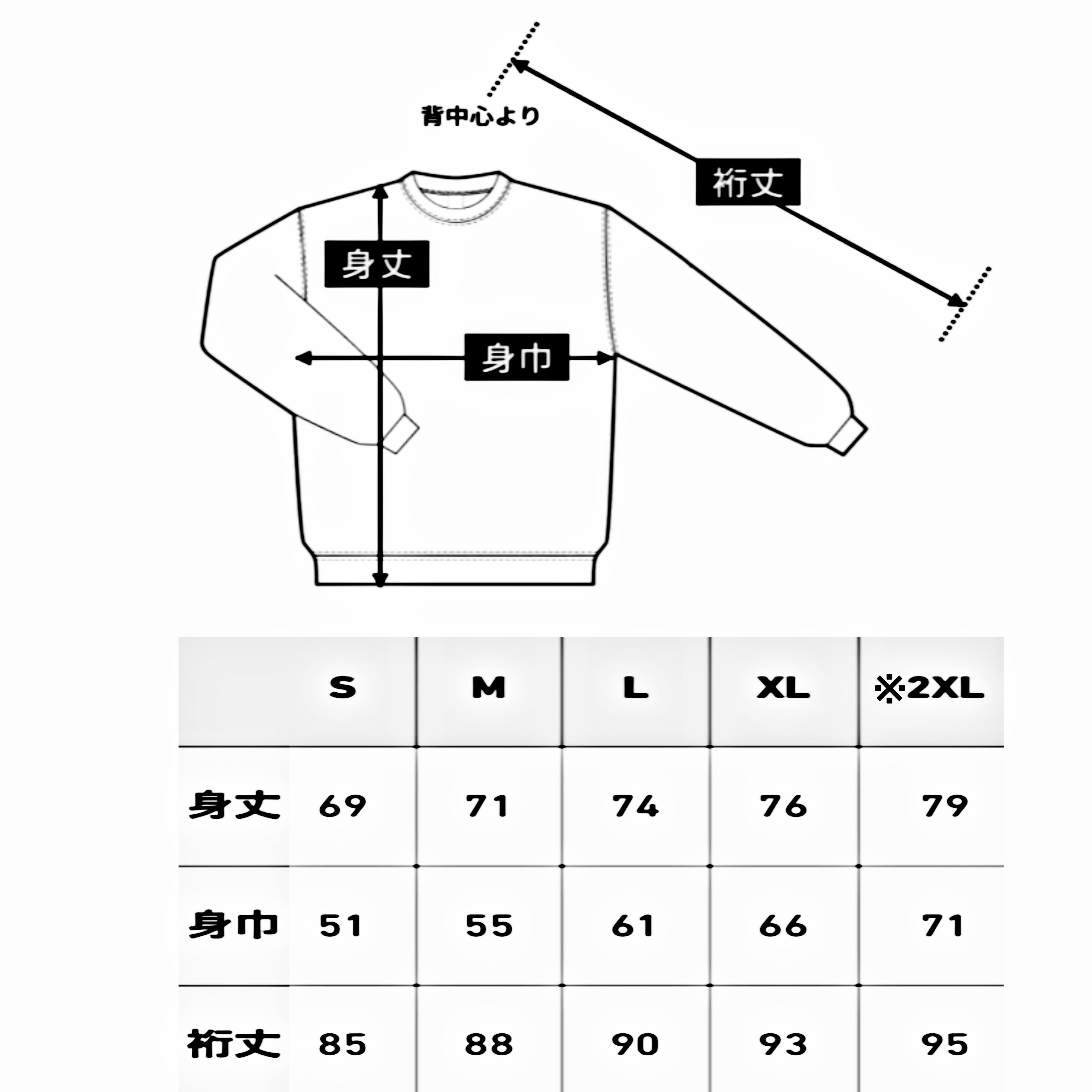 ※2XLについては特別サイズとなります為、定価+500円となります。購入ページを別にご用意しておりますのでそちらをご確認下さい。